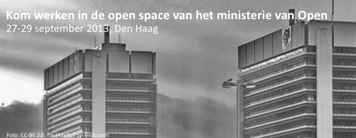 Creative Commons Nederland bestaat dit 10 jaar, en dat laten we niet zomaar voorbijgaan. Samen met het jaarlijkse kunstfestival TodaysArt creëren we eind september een ministerie van open in de oude kantoortorens van het ministerie van BZK en Justitie. We willen hier laten zien wat er allemaal gebeurd binnen Nederland met open, denk bijvoorbeeld aan open content, open design en open data. Om dit ministerie levendig te maken hebben we jullie hulp nodig.